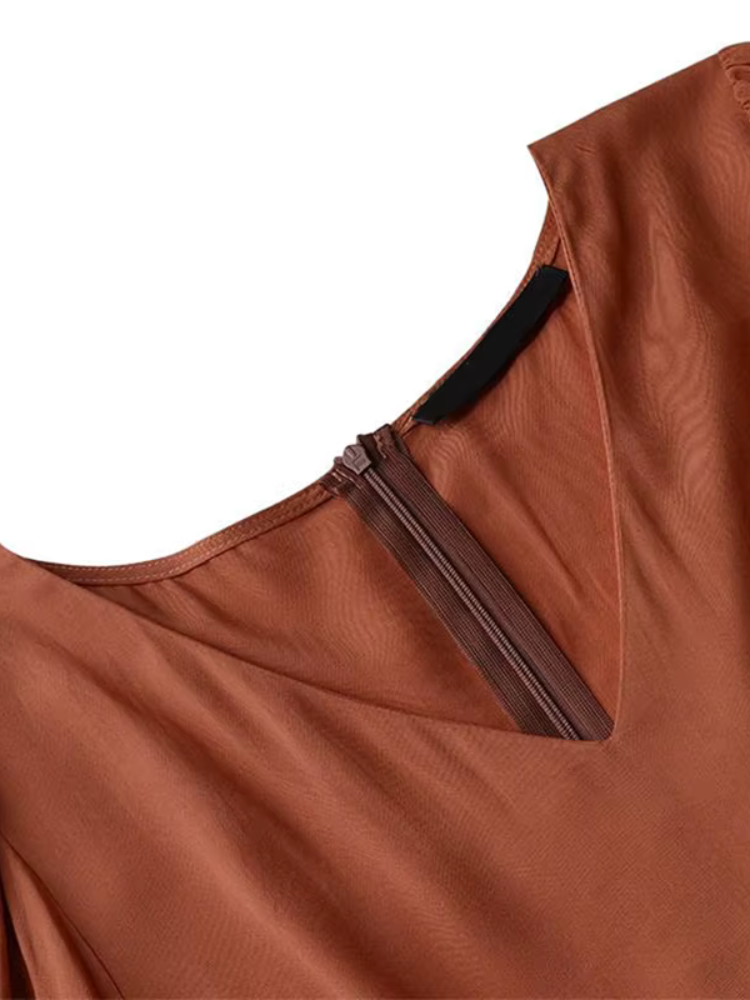 Robe longue terracotta au style élégant et épuré
