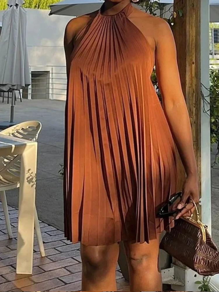 Robe plissée terracotta au style chic et lumineux