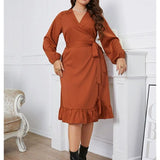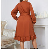 Enveloppez-vous de douceur avec cette robe grande taille terracotta à la coupe portefeuille. Elle met en valeur vos courbes tout en vous offrant une liberté de mouvement idéale au quotidien comme pour une sortie chic.